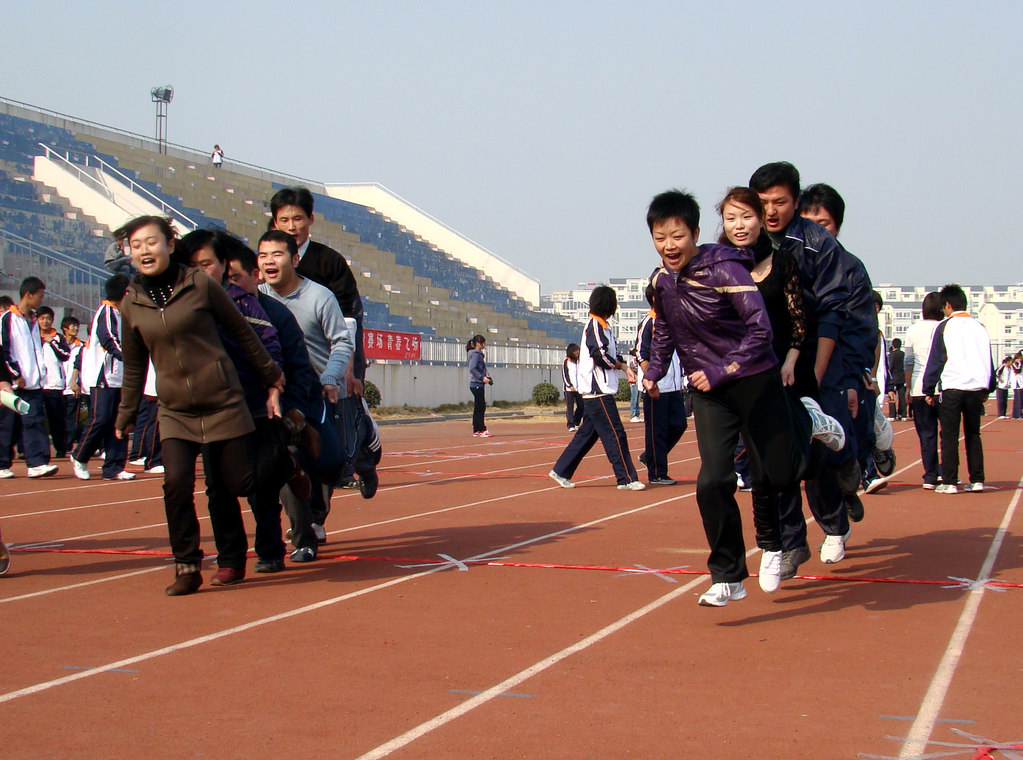 本次心理运动会以“我参与·我运动·我快乐”为主题,旨在加强校企之间的文化融合,增进师生之间的感情交流,提高参与人员的心理素质及心理健康水平。运动会设置了“火车快开”载信心、“幸福敲门”展希望、“搭桥过河”争先锋、“和谐之旅”传梦想、“乘风破浪”迎未来等5个团体项目,在比赛中,每一个项目都需要团队成员克服心理障碍,团结一致,互相信任才能取得胜利。通过心理运动会的成功召开,员工有了一个与企业经理和员工零距离接触的机会,教职工在运动之余与合作企业的员工进行了深入交流,为进一步深化校企合作打下良好的基础。