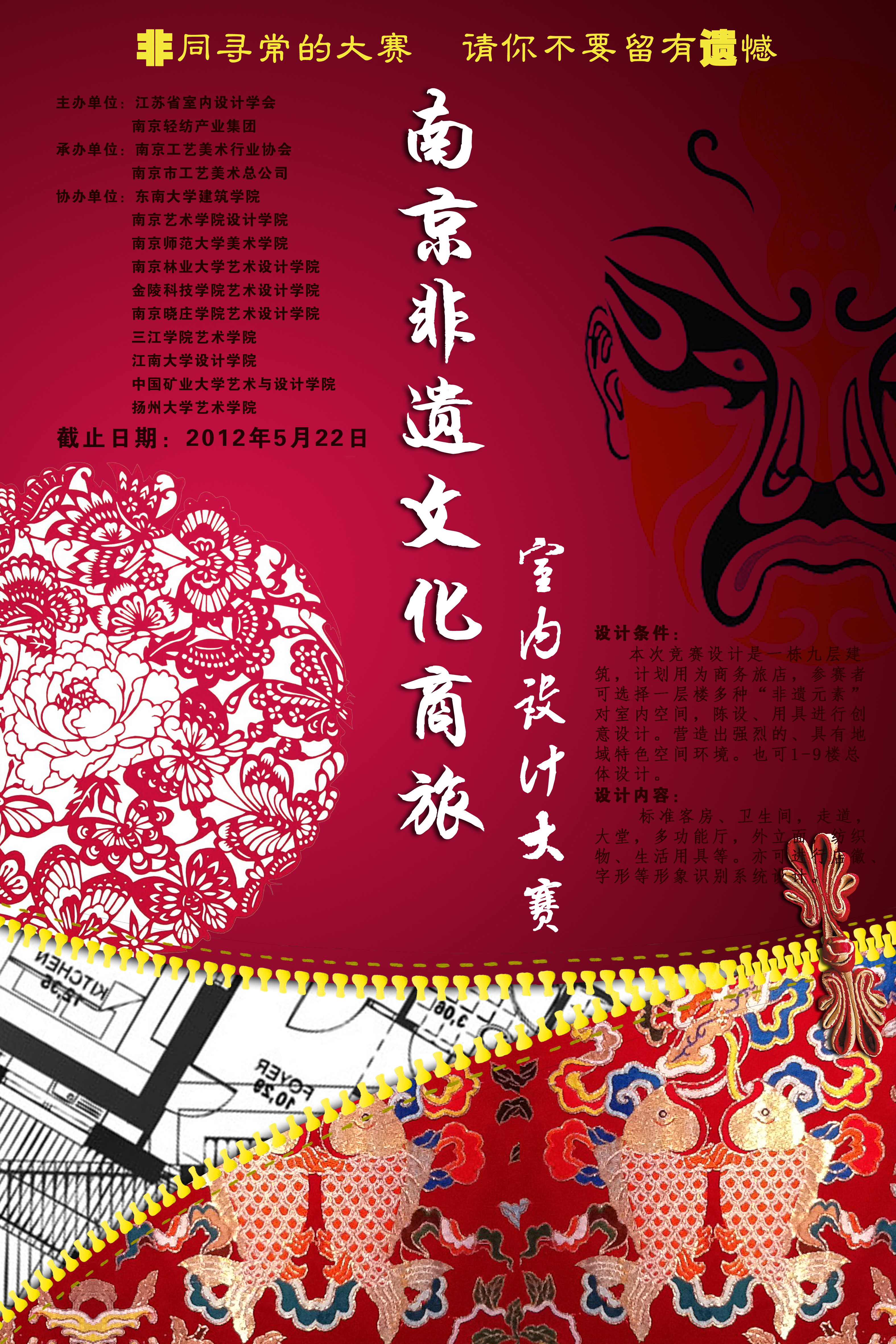 (1)3月中旬开始宣传、组织宣讲传承非遗的重要意义、南京市非遗项目,组织高校师生积极参加本次设计竞赛;