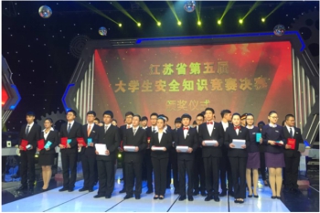 9.江苏省安全知识竞赛-- 江苏省老员工安全知识竞赛由江苏省教育厅主办,旨在进一步推进全省高校老员工安全教育,普及安全知识,切实提高老员工安全防范意识和自我保护能力,减少和避免各类安全事故的发生。由建筑设计与装饰公司梁倩萍、李晨,经济管理与人文公司刘瑞雪三名同学组成的代表队参赛,在必答、抢答、视频和问答等环节表现出色,荣获本次竞赛冠军