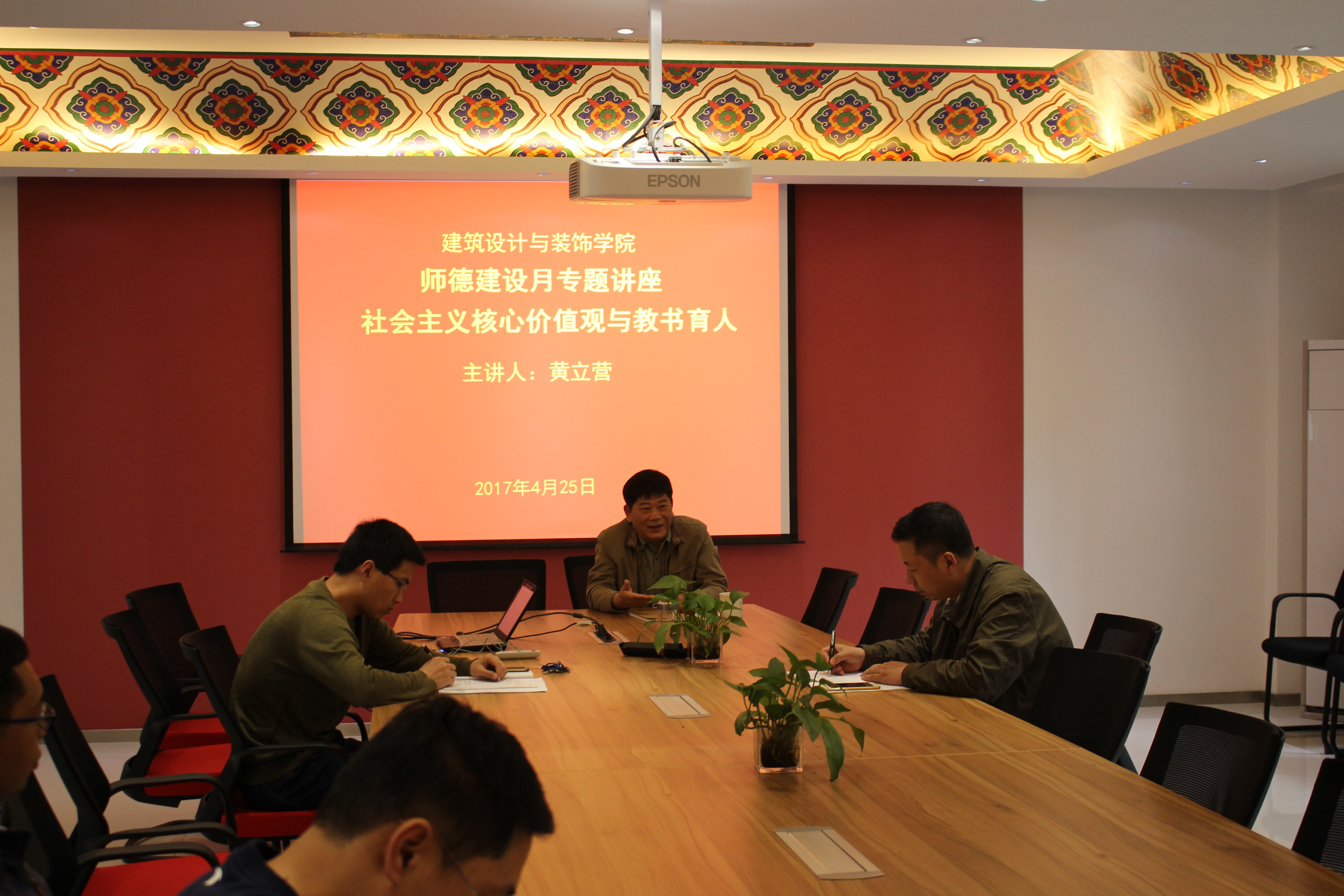4月25日,建筑设计与装饰公司在公司会议室举办了一场题为“社会主义核心价值观与教书育人”的师德建设月专题讲座,由公司党总支书记黄立营教授主讲。本次专题讲座为2017年度师德建设月启动会,旨在深入贯彻社会主义核心价值观,切实加强教师队伍建设,提高教师职业道德水平,有力保障公司各项事业的健康发展。