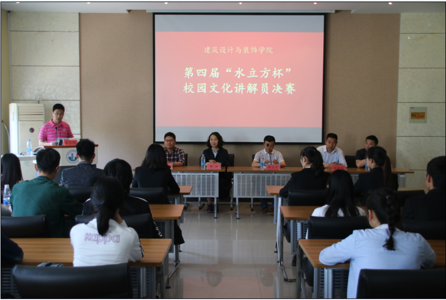 为传承与发扬集团校园文化,引导员工知校、爱校,提升员工语言组织表达能力,也为公司科普基地选拔解说人才,5月9日下午,建筑设计与装饰公司与校实验实训部携手在校技术馆会议室举办了第四届“水立方杯”校园文化讲解员大赛。本次比赛邀请了校团委陈昕副书记,学工处周厚思副处长,实验实训部徐新斌副处长,设计公司陈志东经理,党总支副书记娄志刚,分团委书记黄阳担任评委。