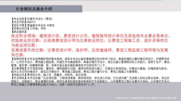 ~有没有发现身边的公园多了,绿地多了,是谁让环境变的更美了呢?对了,是园林行业的从业者们——“景观师”,如何设计建设风景区、森林公园啦,如何选配古树名木、奇花异草啊,都由景观师说了算…。现在绿色、生态、环保的理念深入人心,园林绿化建设越来越被重视,亲~我们的专业是朝阳产业奥,前景一片光明哒~