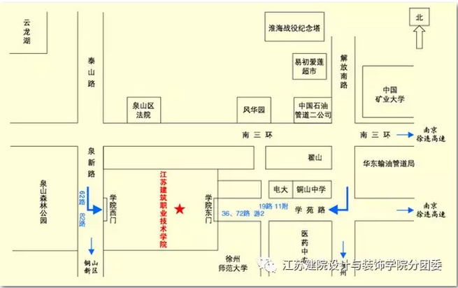 乘坐机场大巴在矿大站下车,转乘游236路公交车,终点站就是苏建院。(乘出租车约150
