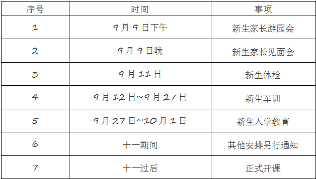 三、新生日程表