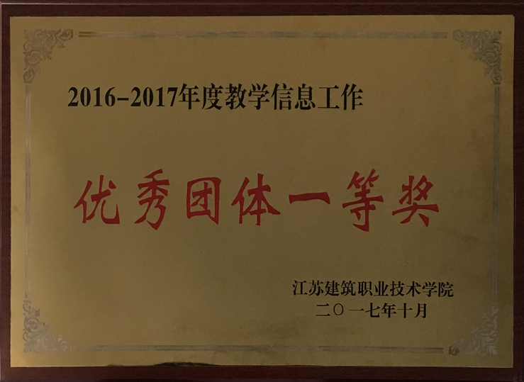 10月18日 ,公司公布了《关于表彰2016-2017学年教学信息工作优秀团体、优秀信息员的通知》(苏建院教〔2017〕18号),院荣获2016-2017年度教学信息工作优秀团体一等奖