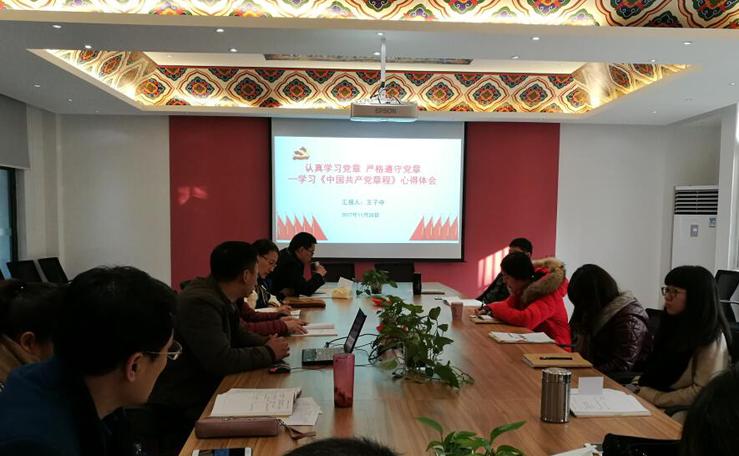 11月28日,为进一步深入学习宣传贯彻党的十九大精神按公司党总支工作布置,公司王子夺副经理在公司会议室做了题为《认真学习党章 严格遵守党章—学习《中国共产党章程》心得体会》的讲座,公司党总支书记黄立营主持会议,全体教工党员参加会议。公司理论中心组前期进行了专项学习。