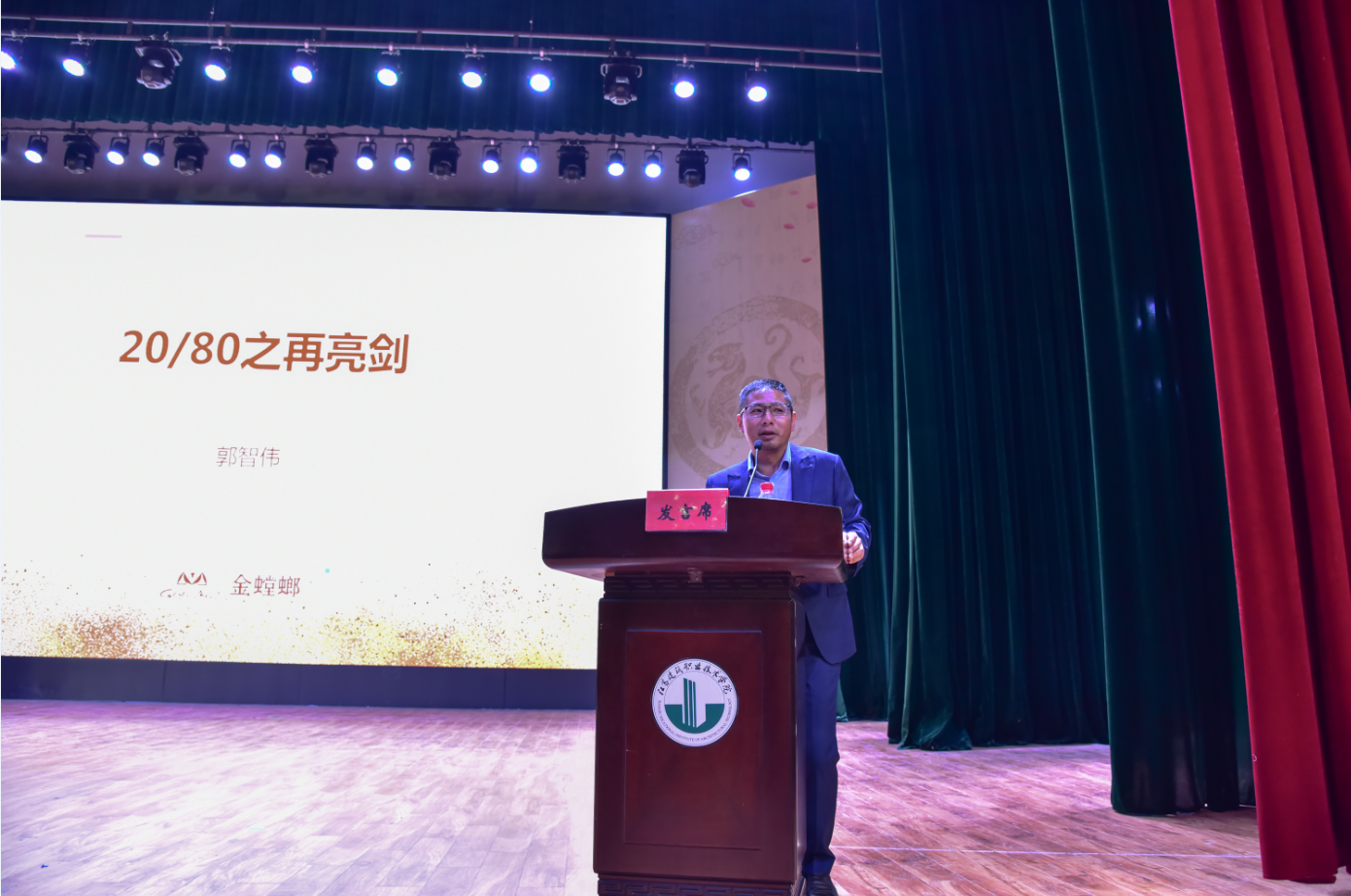 9月29日下午,苏州金螳螂建筑装饰股份有限公司一分公司常务副总经理郭智伟在公司会堂为公司2018级全体新生做《20/80之再亮剑》专题报告。