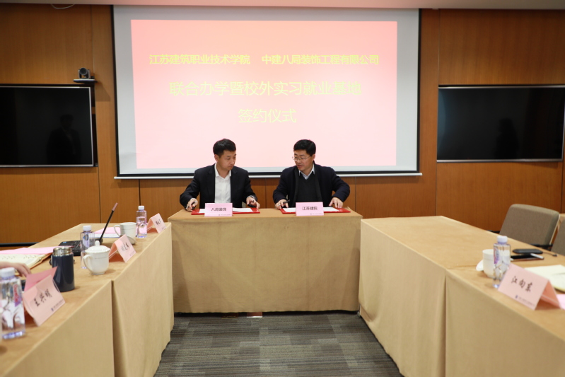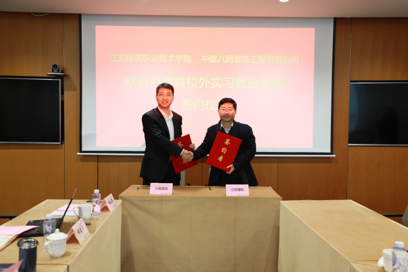 11月14日,公司与中建八局装饰公司在上海举行产学研合作基地签字仪式,校领导沈士德经理、BB贝博艾弗森党总支书记陈宏振、BB贝博艾弗森经理陈志东、BB贝博艾弗森副经理江向东、建筑装饰工程技术专业主任张鹏,中建八局装饰公司党委书记、董事长兼总经理孙士东、党委副书记兼纪委书记鲁长春、副总经理周亮等公司领导班子成员、中建八局装饰公司各职能部门负责人出席了签字仪式。