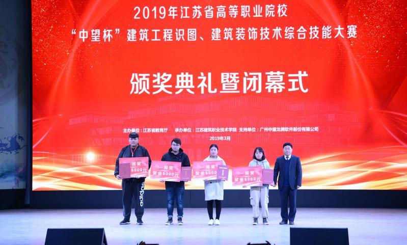 3月8日,由江苏省教育厅主办,公司承办的2019年全省高等职业院校技能大赛“中望杯”首届建筑装饰技术应用赛项(赛项编号JSGZ1937)在建筑技术馆成功举行,全省40所高职院校120名选手参加了竞赛。经过激烈角逐,由公司张鹏、王利华老师指导的张倩倩、王一臣、王宝雨团队脱颖而出,荣获团体一等奖。