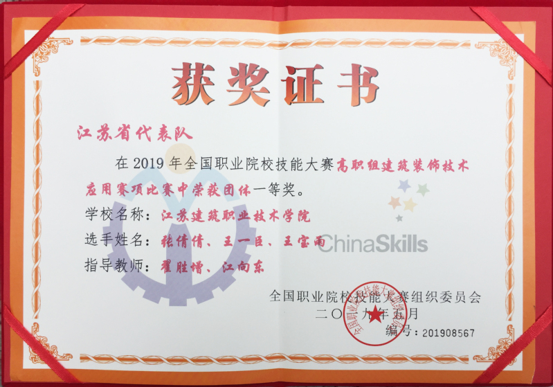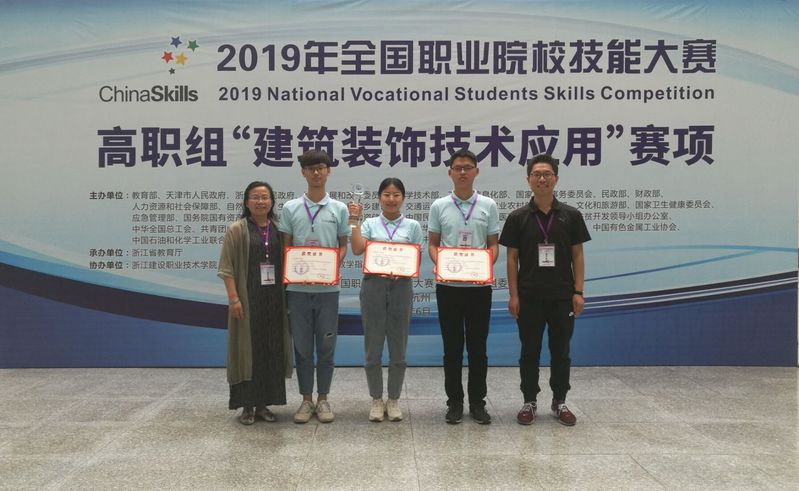 5月31日-6月2日,由教育部等30余家单位联合主办的2019年全国职业院校技能大赛高职组首届“建筑装饰技术应用”赛项在浙江杭州举行,来自全国79所高职院校的237名选手参赛。公司由BB贝博艾弗森翟胜增、江向东两位老师指导的装饰16级张倩倩、王一臣、王宝雨3名同学组成的江苏省代表队经过激烈角逐,最终以总分第一名成绩荣获国赛一等奖。