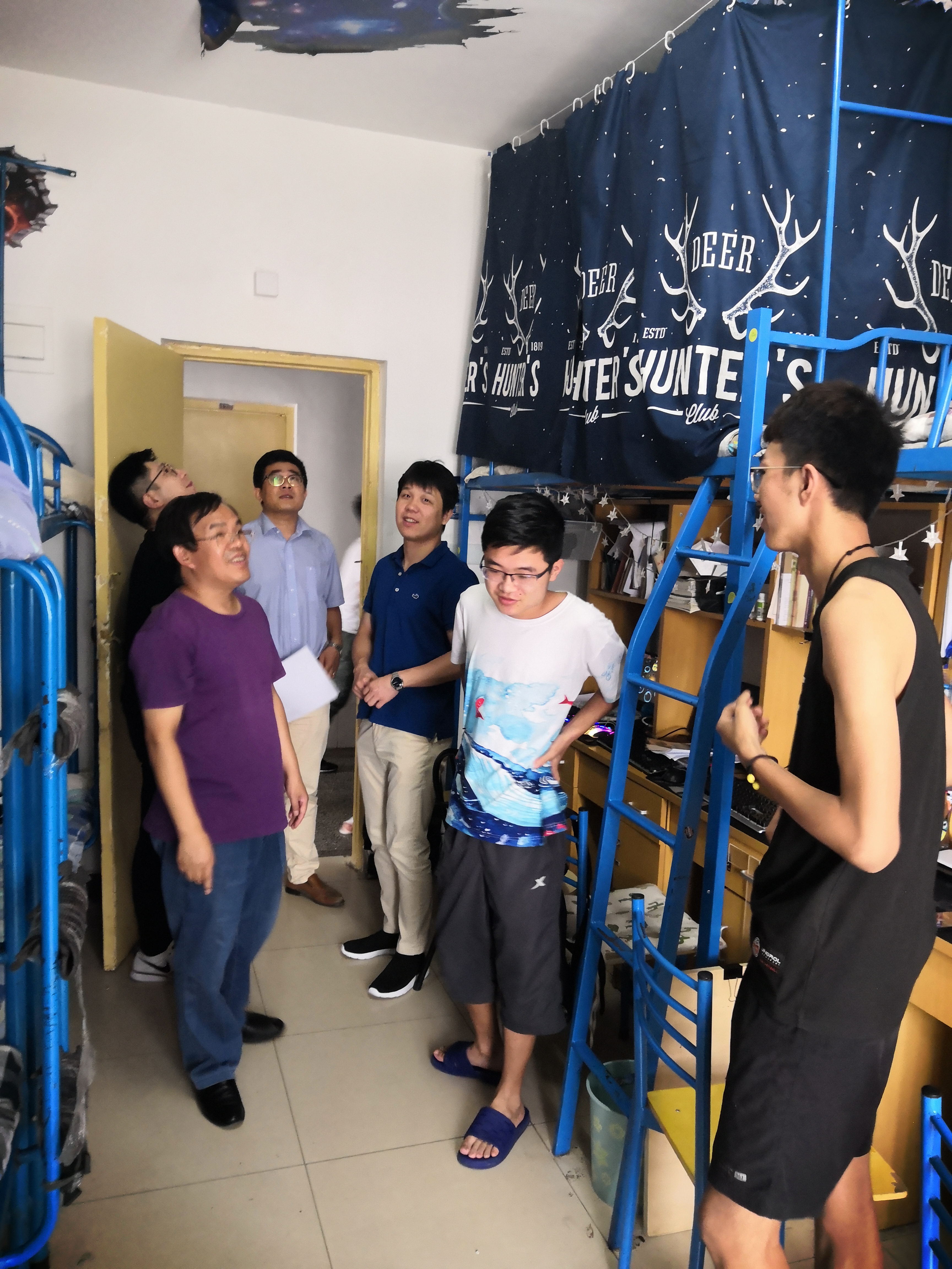 79日下午,公司党总支书记陈宏振、副书记李彦江带领专兼职辅导员走访员工宿舍,深入了解员工思想、学习、生活、安全、卫生等情况,推进宿舍文明建设。