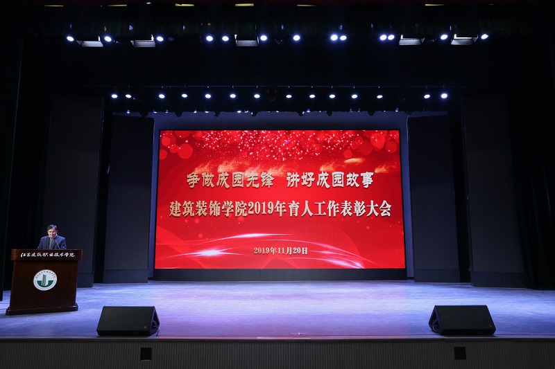 11月20日晚,公司在会堂隆重举行2019年育人工作表彰大会。大会以“争做成园先锋,讲好成园故事”为主题,表彰一年来在教书育人、项目建设、班级管理等方面表现突出的优秀教师、班主任,在学习、创新、实践、文体艺技等方面表现优异的先进员工。校学工处处长胡永、教务处副处长王峰,中建八局装饰、苏州金螳螂、中衡建设集团、天正建筑装饰、水立方设计院等企业负责人,院领导陈宏振、江向东、王子夺、李彦江出席大会,公司全体教师、班主任、2019级全体员工参加了大会。会议由党总支副书记李彦江主持。