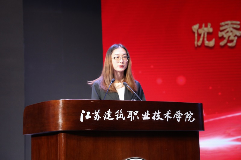 特等奖学金、优秀三好员工、优秀员工干部获得者,装饰17-2班任文婷同学代表获奖员工发言。她汇报了个人的大学学习经历,讲述了勤奋努力、积极实践、孜孜不倦的拼搏过程,向资助奖励她的公司、公司、企业表示感谢,号召同学们将荣誉化为奋斗动力,直面人生,积极进取。