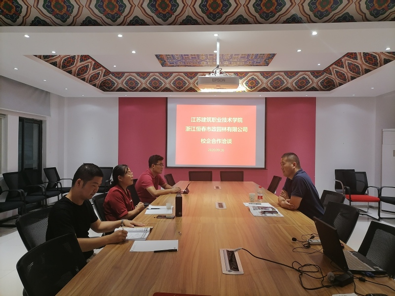 9月16日下午,浙江恒春市政园林工程有限公司崔学艺董事长来公司进行校企合作洽谈。公司副经理江向东、副书记李彦江、环境艺术设计专业主任史华伟出席了会议。