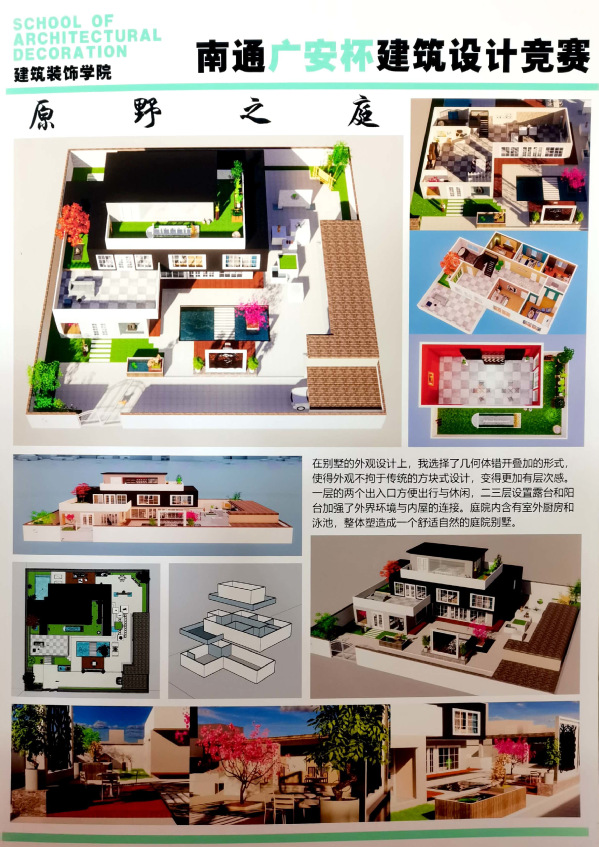 为不断提高员工实践能力和创新能力,检验员工创新、设计技能,实现“以赛促学,以赛促教”的目的,公司和南通市广安建筑安装工程有限公司联合举办“南通广安杯”建筑设计竞赛。大赛从7月1日开始到10月26日结束,共收到员工提交的作品34项,经过建筑设计专业教师和企业专家共同评比,共评出一等奖1名,二等奖1名,三等奖3名,鼓励奖5名。