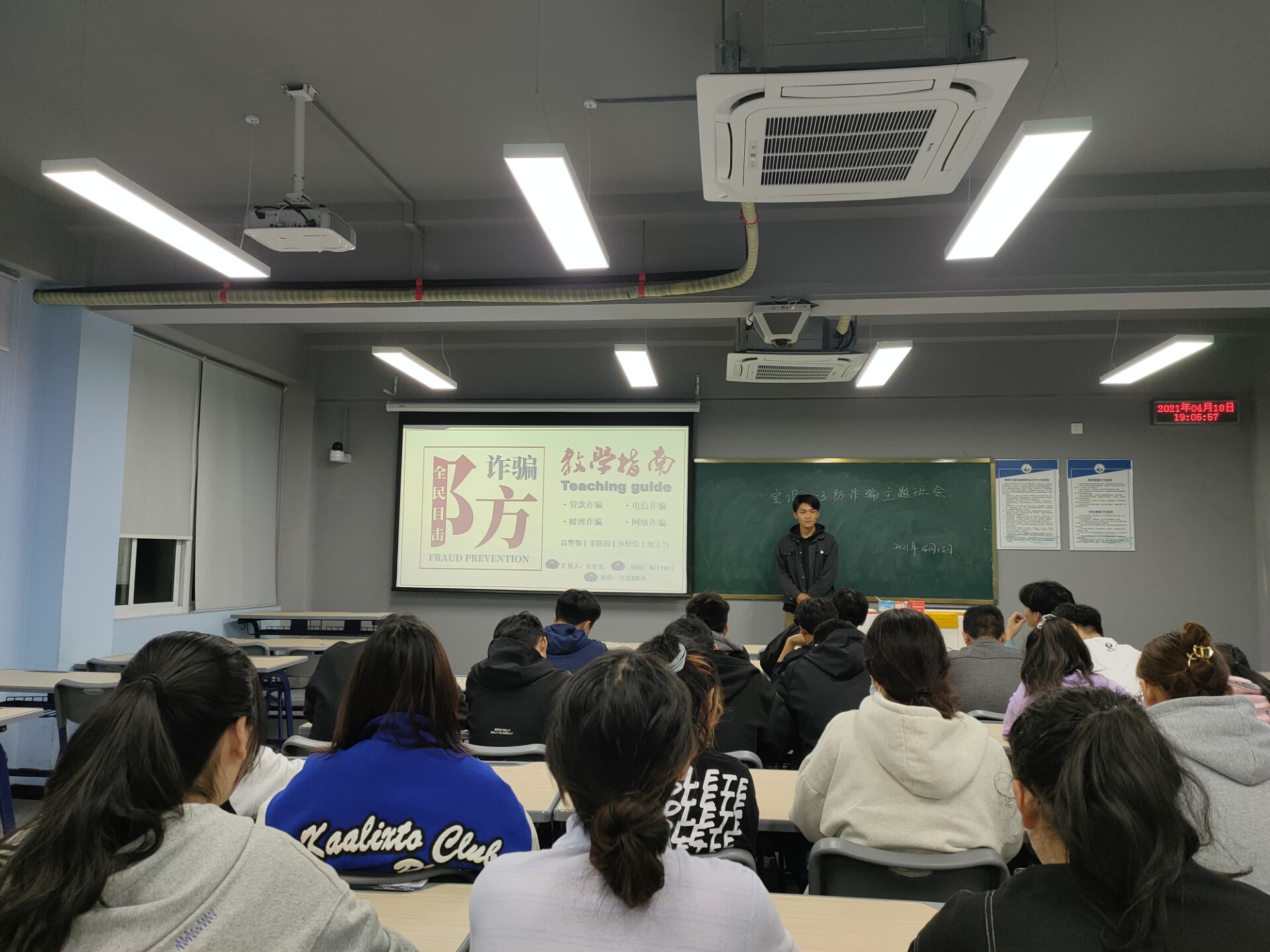 为提高老员工防范通讯网络诈骗的警惕性,帮助大家掌握更多的防诈骗知识和技巧,公司于418日晚在教二楼组织开展了通讯网络诈骗案例“一人一讲”暨防诈警示教育主题班会。19级、2048个班级1400余名员工参加了此次活动。