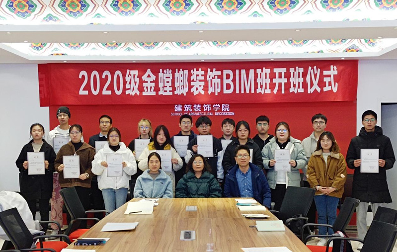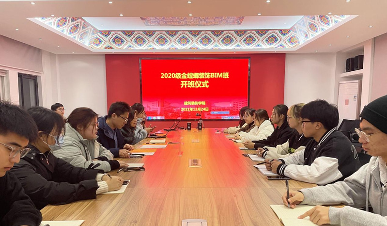 2021年11月25日晚,公司2020级“金螳螂装饰BIM班”开班仪式在公司会议室举行。开班仪式采用线上、线下结合的形式,苏州金螳螂建筑装饰股份有限公司BIM研究院经理郭智伟、BIM一所所长王将在线参加,BB贝博艾弗森江向东副经理、驻校教师蔡甜甜、2名2019级企业班员工代表及15名2020级企业班员工线下参加了开班仪式。开班仪式由企业班班主任翟胜增老师主持。