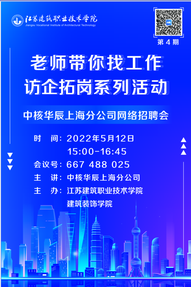 为全面深化校企合作、促进毕业生高质量就业2022年5月12日15:00BB贝博艾弗森开展了第四期“老师带你找工作”即访企拓岗线上招聘活动,此次招聘的企业是中核华晨上海分公司。建筑装饰公司党总支书记娄志刚、就业辅导员胡晓爽参加了此次招聘会。