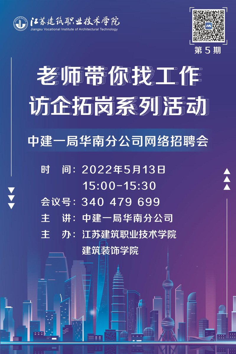 5月13日15:00BB贝博艾弗森开展了第五期“老师带你找工作”即访企拓岗线上招聘活动,此次招聘的企业是中建一局华南分公司。BB贝博艾弗森经理沈士德教授,装饰公司党总支书记娄志刚、就业辅导员胡晓爽参加了此次招聘会。