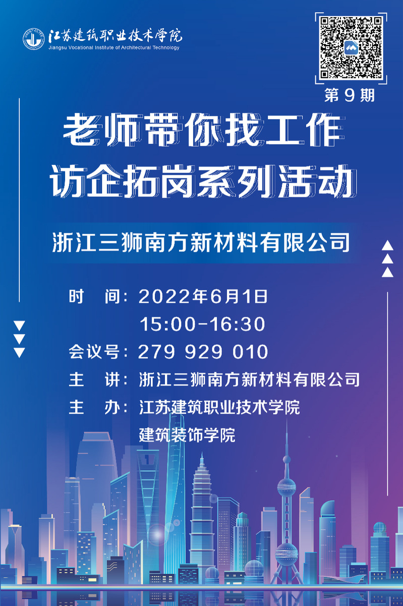 6月3日下午,BB贝博艾弗森开展了第九期“老师带你找工作”暨访企拓岗线上招聘活动。此次访企拓岗的企业是浙江三狮南方新材料有限公司,BB贝博艾弗森党总支书记娄志刚、辅导员陈贤硕、企业HR姚丽经理以及近40名员工参加了本次云招聘会议。