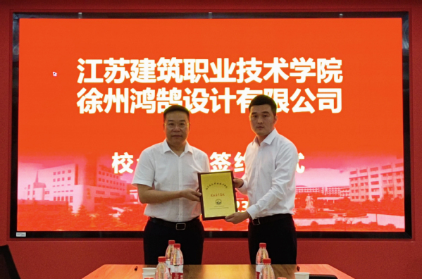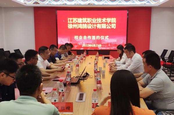 6月23日下午,公司与徐州鸿鹄设计有限公司校企合作签约仪式在公司会议室举行。副经理刘海波,校企合作处处长余涛、公司党总支书记娄志刚、副经理袁涛、副经理王子夺、副书记刘爱萍、副经理王炼,徐州鸿鹄设计有限公司总经理张洋、设计总监时帅(装饰97级员工)等出席签约仪式。