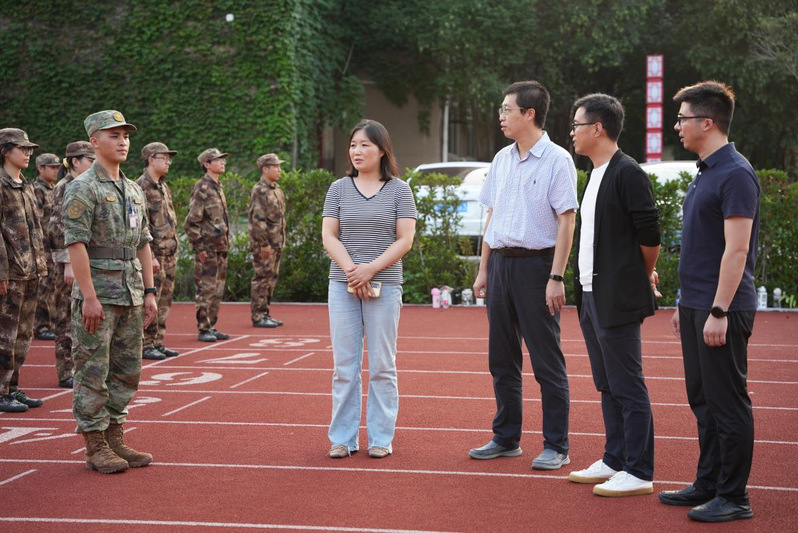 一行人员了解了各排参训员工的训练和适应情况,对承训官兵们的辛勤付出表示衷心感谢,对同学们在训练期间表现出的军容严整和激情昂扬的精神风貌给予了充分肯定,同时希望同学们勇敢接受军训洗礼,锤炼意志,保持良好的状态继续训练。