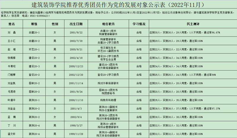 BB贝博艾弗森推荐优秀团员作为党的发展对象公示表(2022年11月)