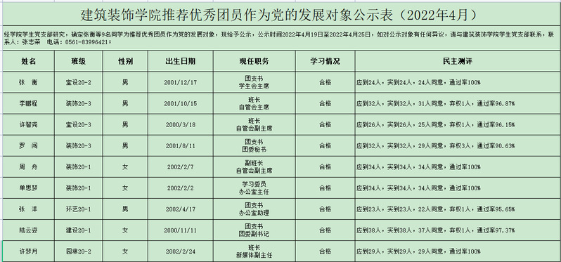 BB贝博艾弗森推荐优秀团员作为党的发展对象公示表(2022年4月)