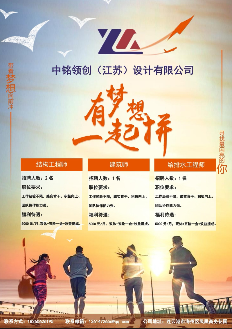 招聘启事三十一 | 中铭领创(江苏)设计有限公司