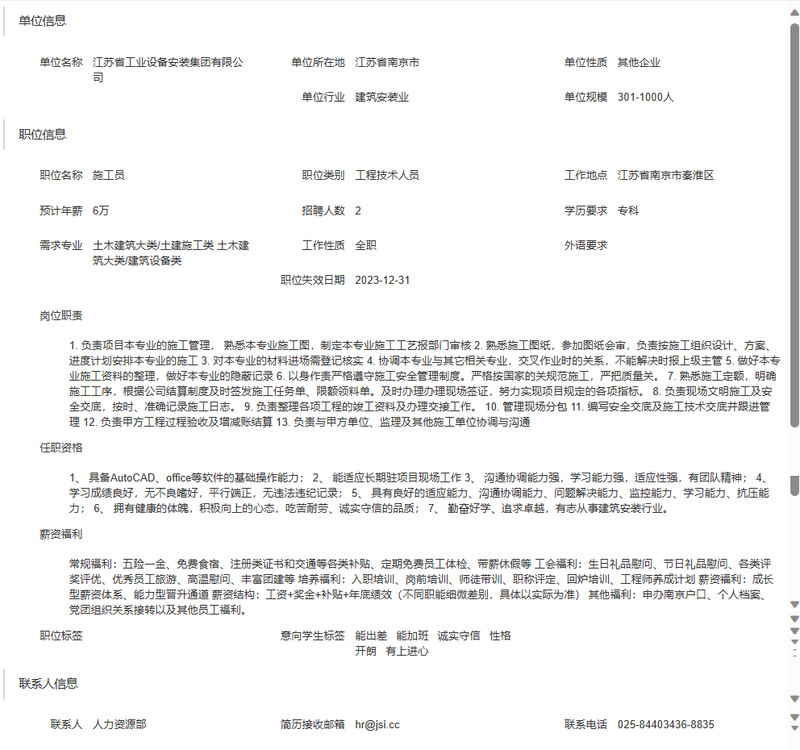 江苏省工业设备安装集团有限公司招聘简章