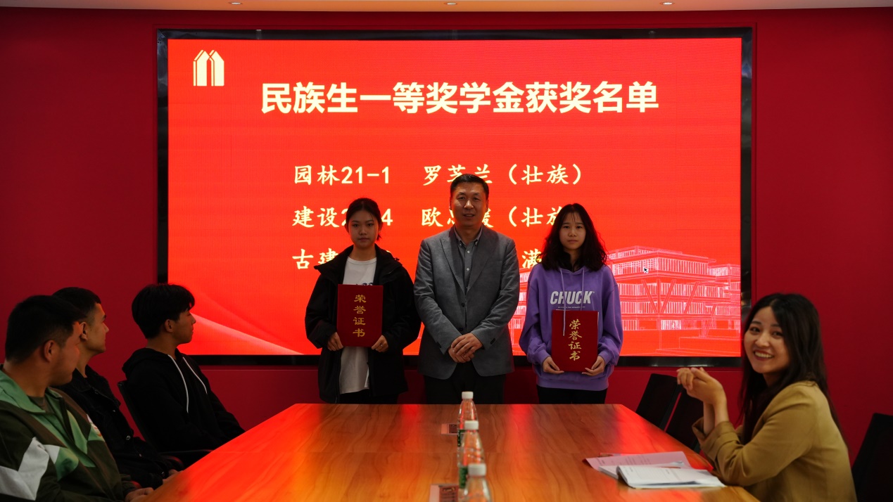 园林21-1班罗芝兰同学代表奖学金获得者发言,她表示感谢公司给予民族生的平台和关怀,未来会在共同的信仰、信念和价值观的引导下,以建设性思维和实干精神,为公司和公司的发展进步贡献力量。