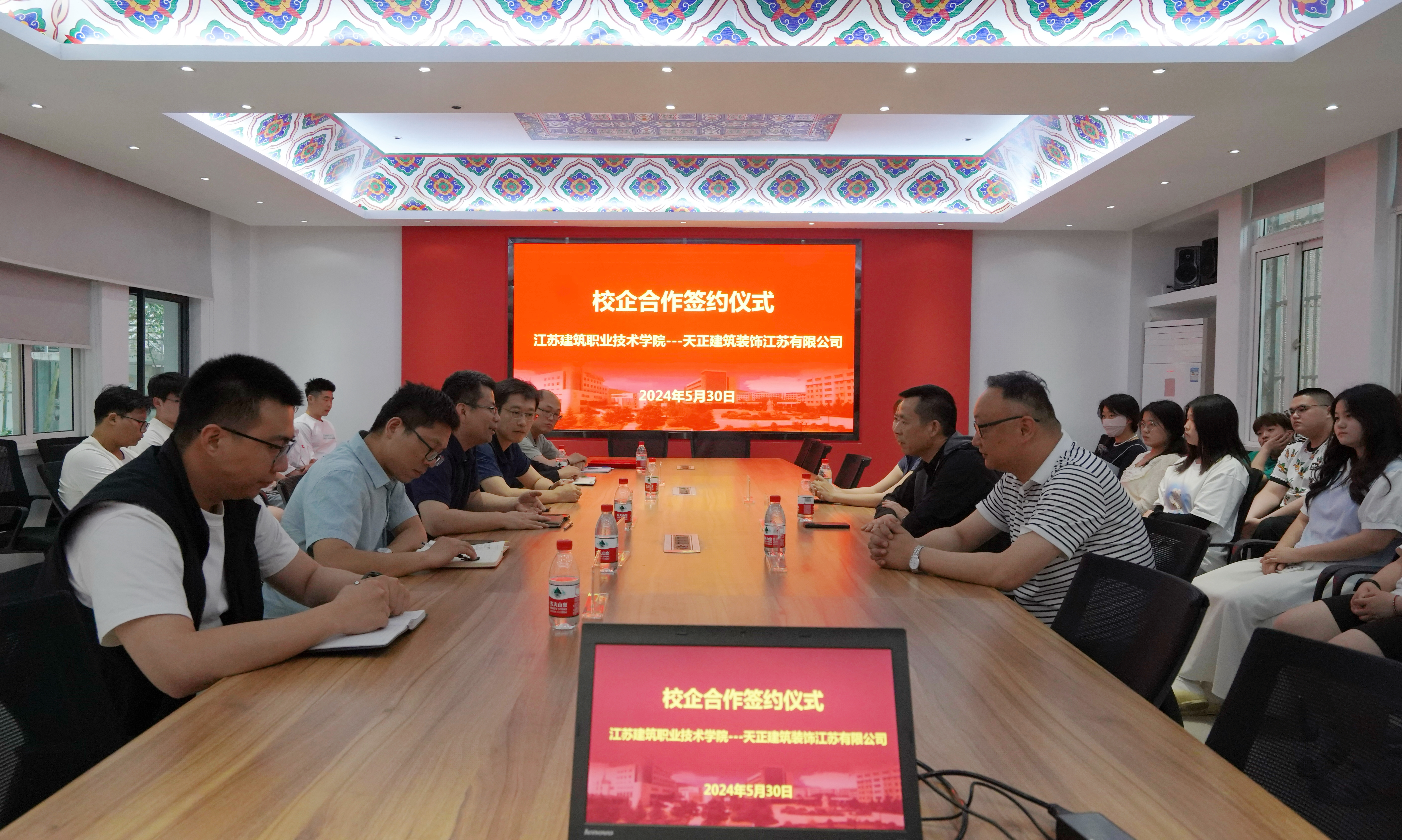 2024年5月30日下午,公司与天正建筑装饰江苏有限公司、江苏水立方建筑装饰设计院举办校企合作协议续签仪式,仪式在BB贝博艾弗森会议室举行,校企合作处处长余涛、BB贝博艾弗森经理袁涛、BB贝博艾弗森副经理翟胜增、各相关专业主任,天正建筑装饰江苏有限公司董事长李宝珠、总经理朱攀登、江苏水立方建筑装饰设计院经理胡艳琴,BB贝博艾弗森员工代表等近30人参加了签约活动。