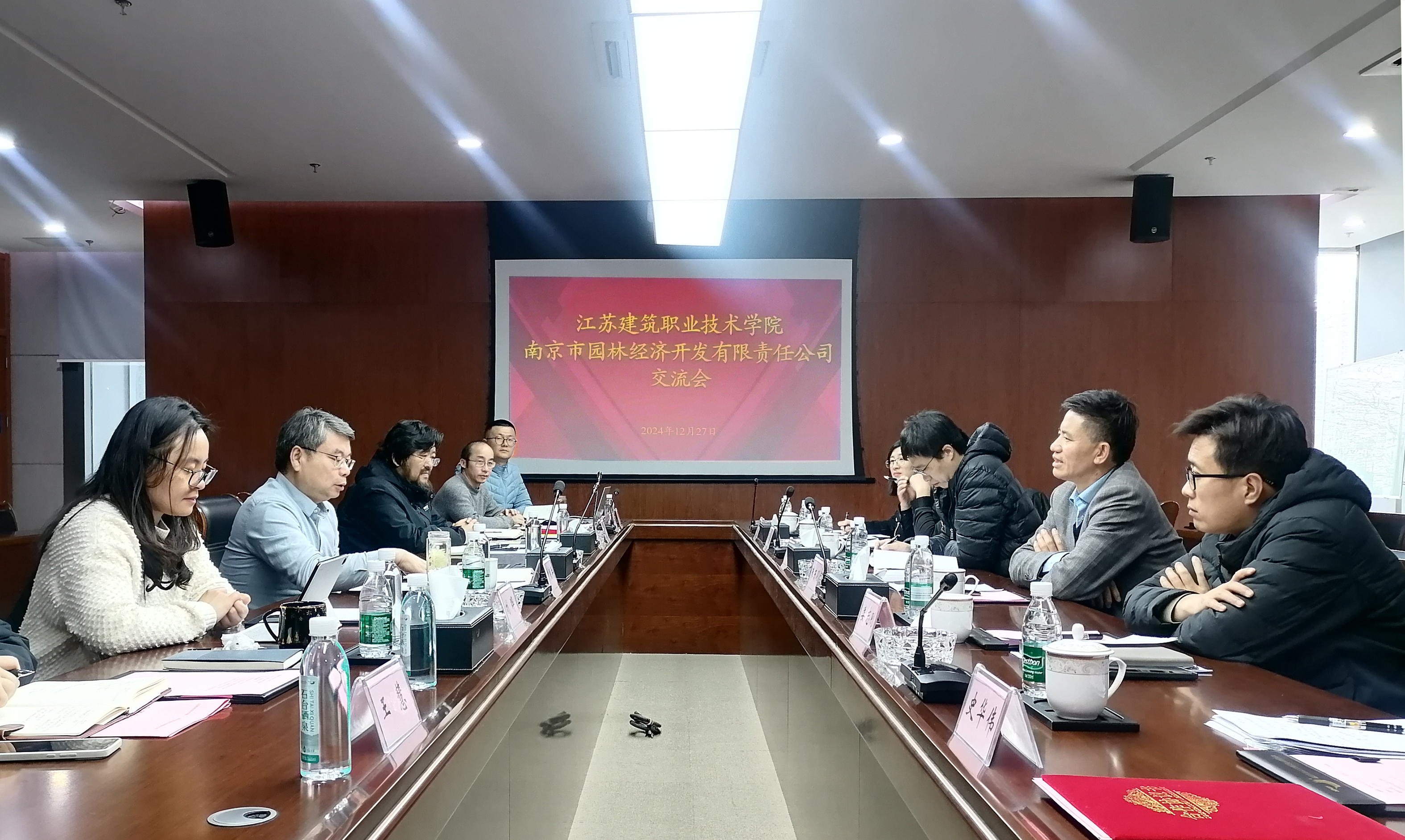 2024年12月27日,公司党委书记朱东风带队赴南京市园林经济开发有限责任公司洽谈校企合作事宜。BB贝博艾弗森党总支书记娄志刚、经理袁涛、副经理王炼、园林工程技术专业主任申雯雯、环境艺术设计专业主任史华伟等一行参加座谈交流。南京市园林经济开发有限责任公司,党总支书记、董事长赵康兵携总经理陈兵、安品部负责人方晓海、综合管理部负责人朱炜、研发部设计院负责人胡雪澄、工程中心负责人刘晔等热情接待了来访公司一行。