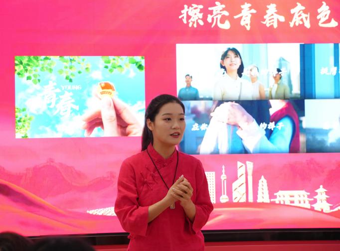 最后,孙歌尧分享了自己的非遗传承之路及青春成长故事。详细介绍了自己在祖孙齐心传非遗、弘扬民族文化、增强民族自信等方面所做的努力和实践探索。同时,她从自己助力农旅,唱响乡村振兴最强音;创新香包设计,积极助力当地全域乡村旅游融合,推动香包小镇新发展;担任“非遗进校园”宣讲大使并在全国各地开展数百场红色宣讲活动;参加中国共产主义青年团第十九次全国代表大会,在人民大会堂近距离聆听党中央领导的谆谆教诲等经历讲述,勉励青年学子珍惜青春韶华,找准奋斗方向,将自己的青春与国家、民族、社会发展联系起来,铸牢信仰,让青春在奋斗中焕发光彩。装饰公司师生们在孙老师的精彩故事讲述中共同上了一堂生动的思政课。