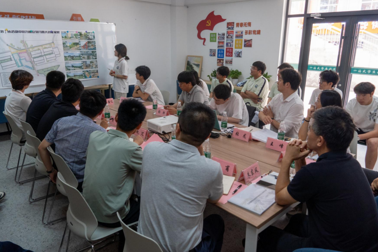 会上,员工团队(焦九皋组、高语晗-王子鑫汇组、李忠劼组)展示了基于130份宿舍调研数据的三组设计方案,方案涵盖空间规划优化、公共空间提升、节能改造、立体交通设置等实用创新点。江苏省建筑设计研究院专家徐义飞现场指导,将行业标准引入教学实践。学工处、后勤部门与师生代表围绕方案展开多轮论证,形成功能提升优先,分期实施可行的改造共识。